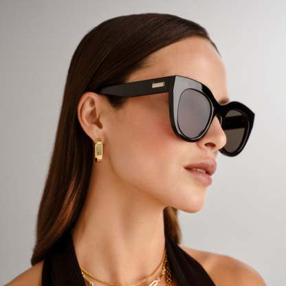 A favorite of Meghan Markle and Olivia Palermo, the AIR HEART silhouette is an iconic Le Specs style. With oversized and dramatic proportions reminiscent of a cat eye, the style is designed with a thick semi-translucent tan frame and luxurious metal top bar inlay, then fitted with premium zero base smoke flat lenses. The perfect statement sunglass to suit all face shapes.