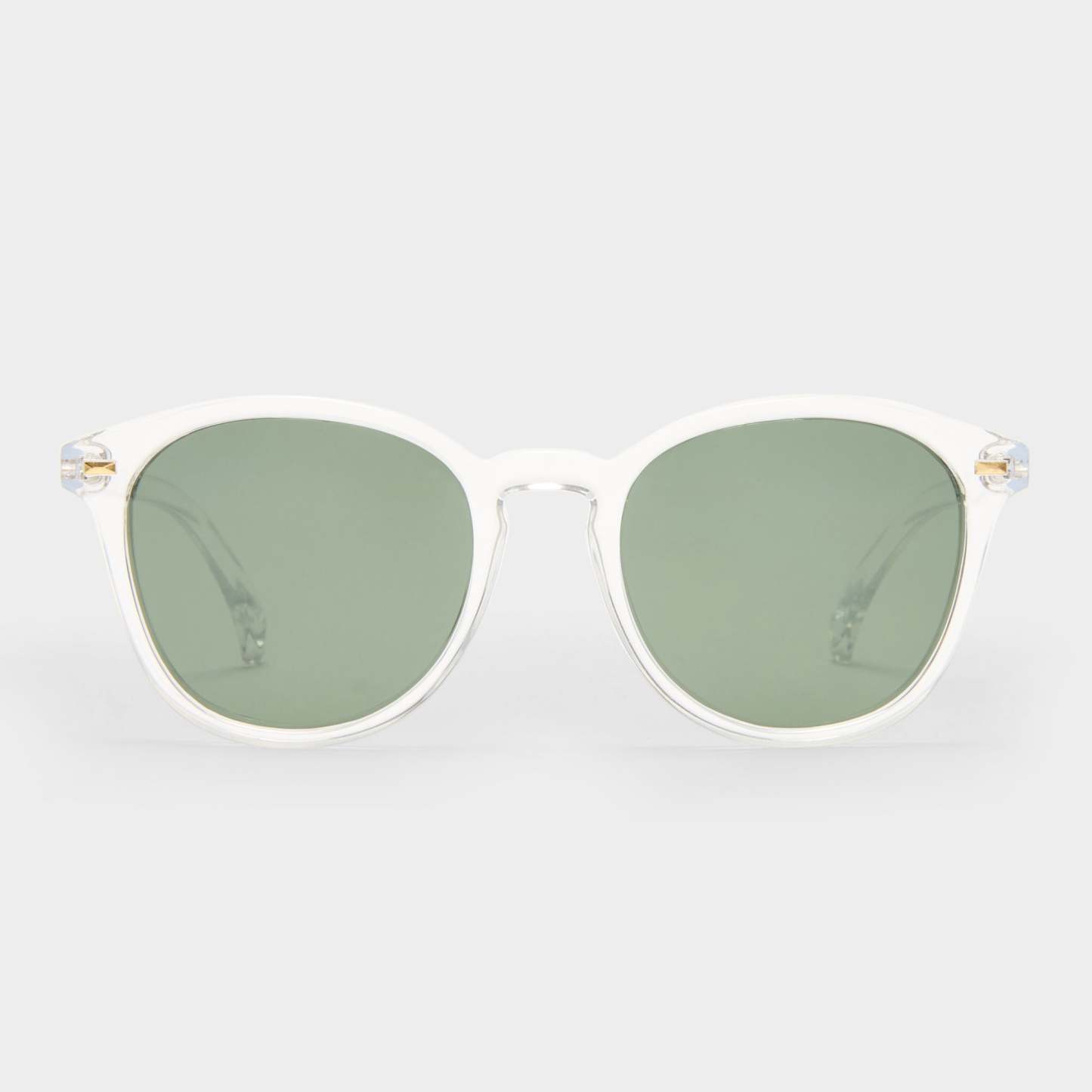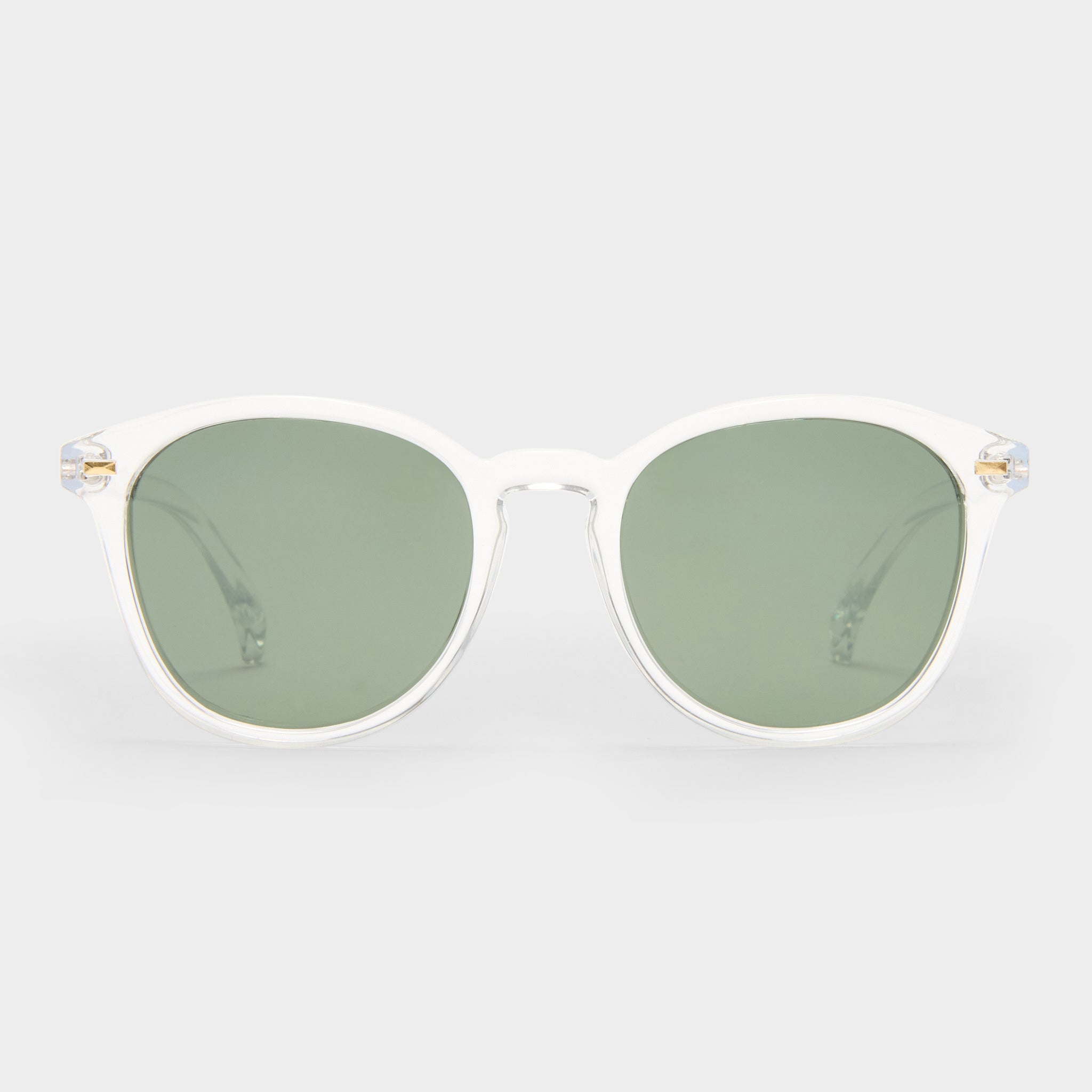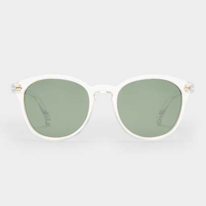 • Finished in a crystal clear frame with khaki mono polarized lenses.