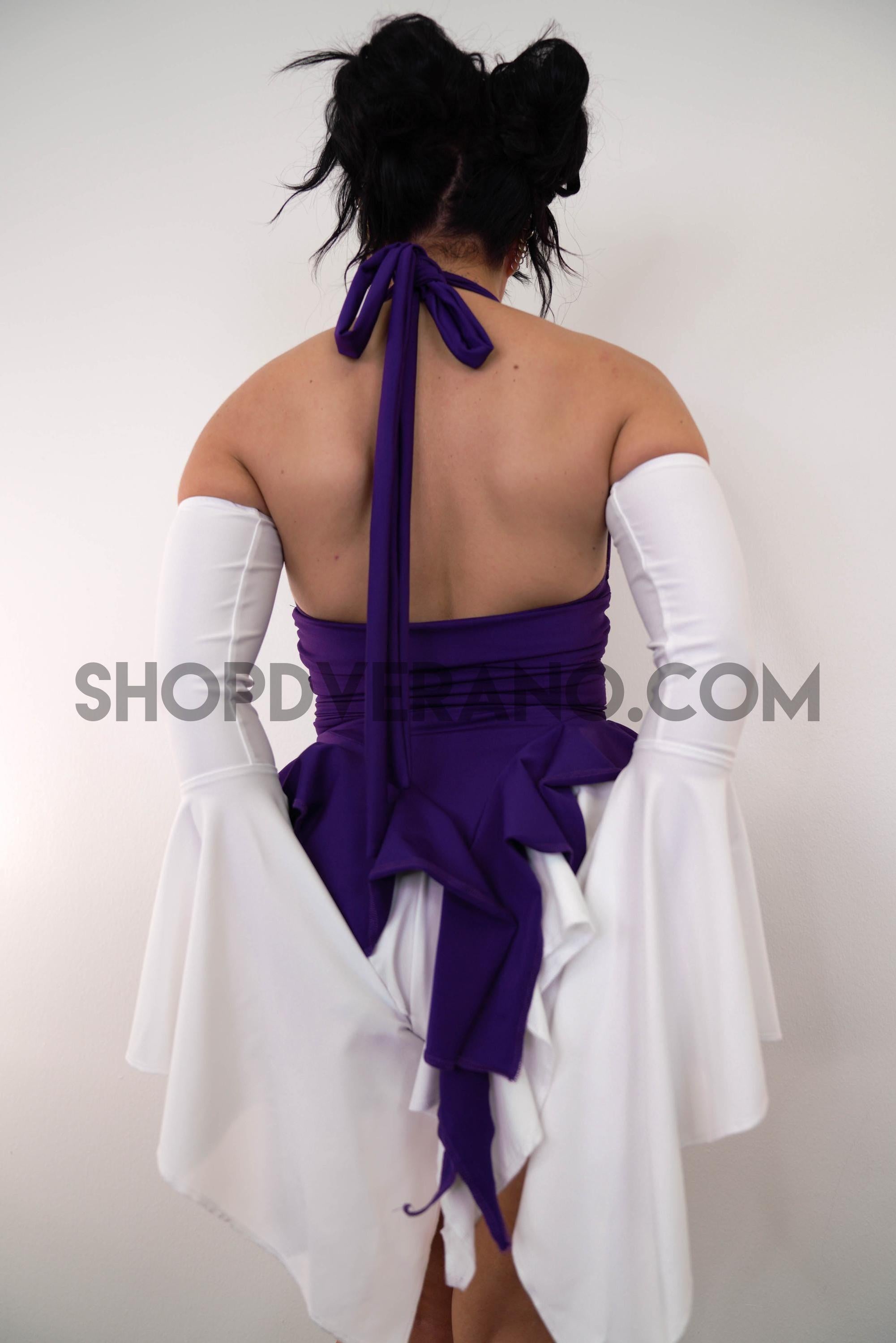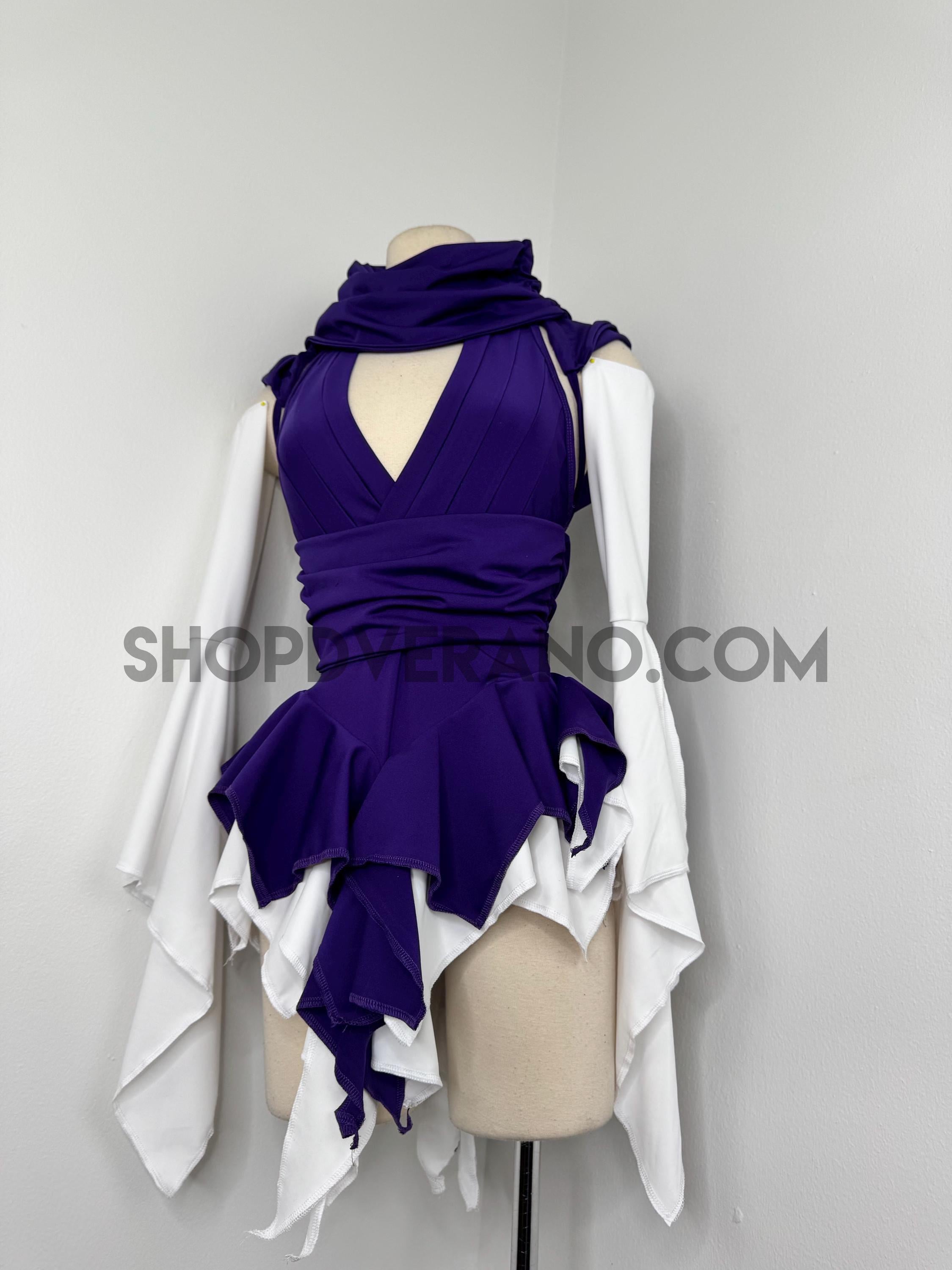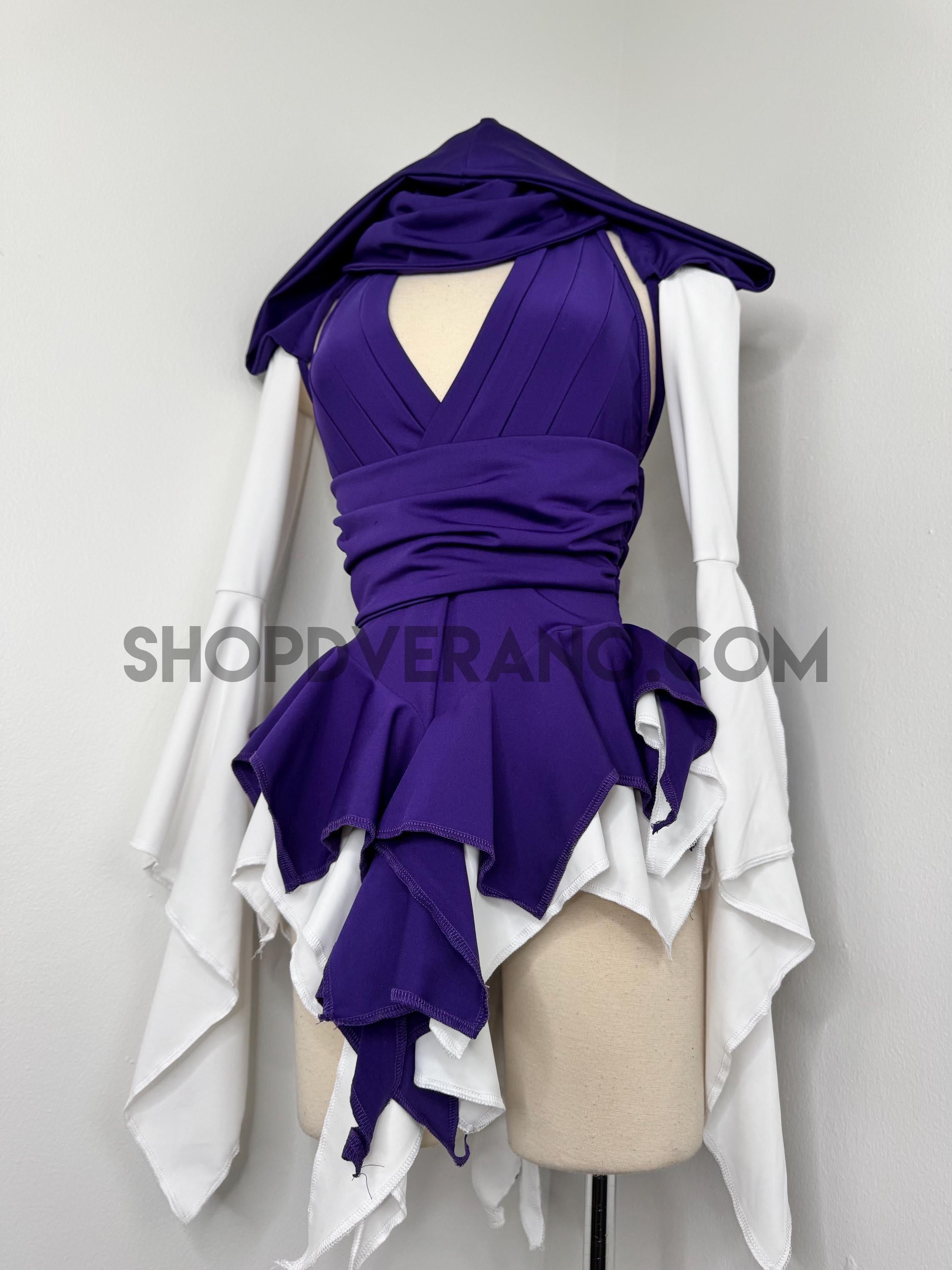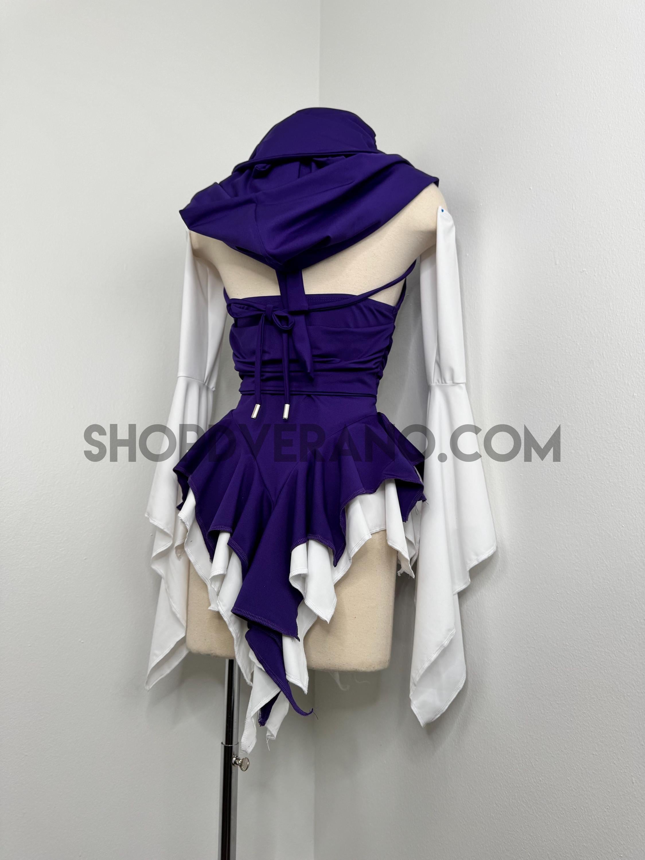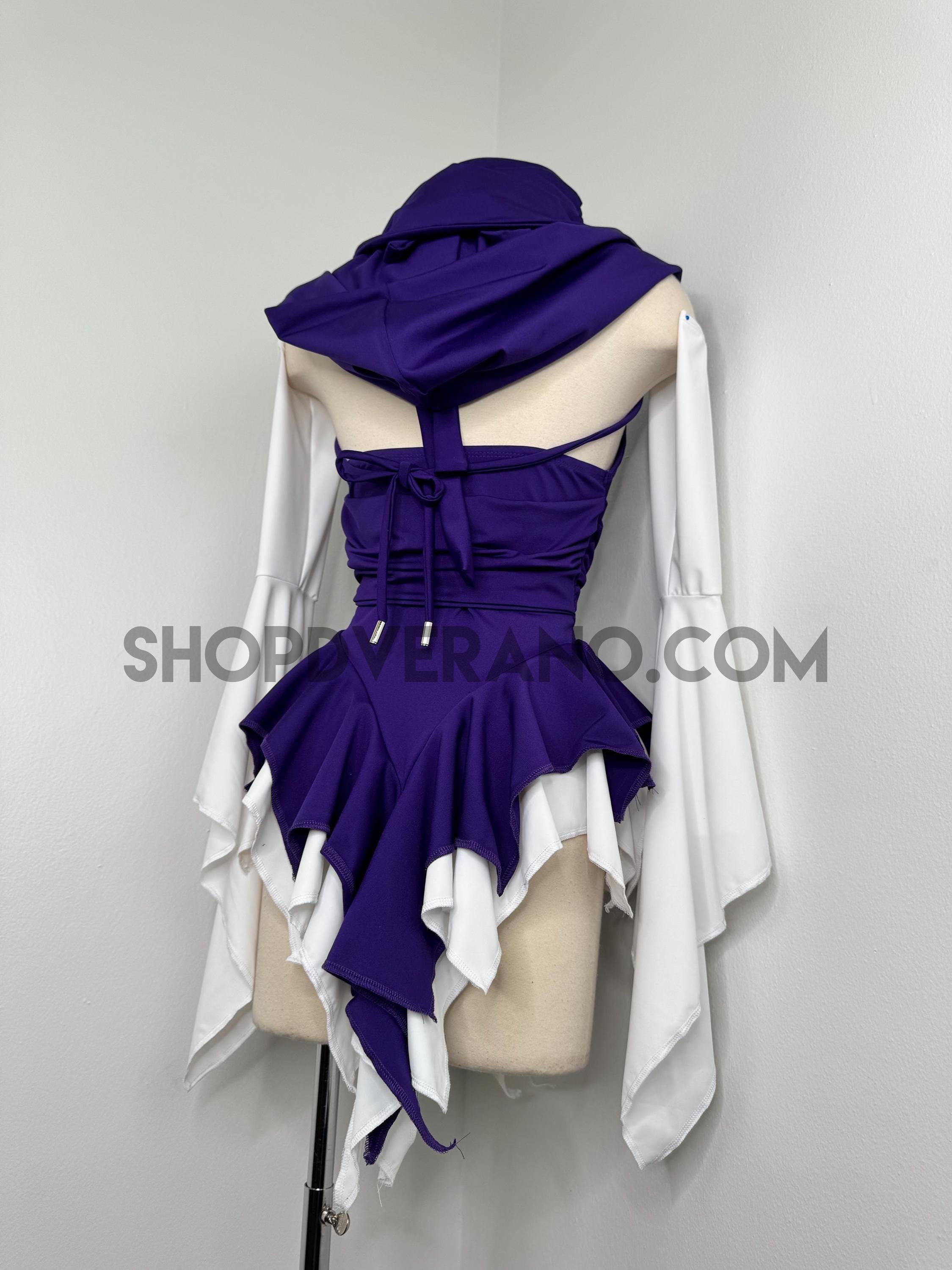 Designed in a deep purple and white contrast, the Bloodline Fairy Set reflects duality, softness and strength, calm and intensity. Crafted from high quality 4-way stretch fabric, it hugs your curves while remaining breathable and comfortable for long nights of dancing, exploring, and fully expressing your energy.