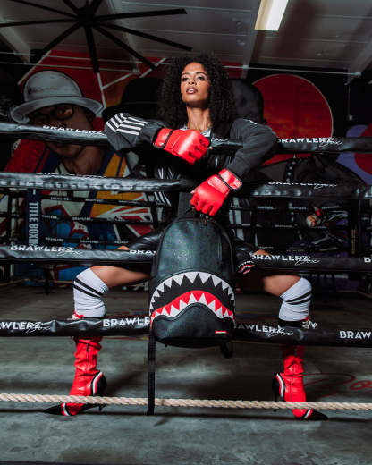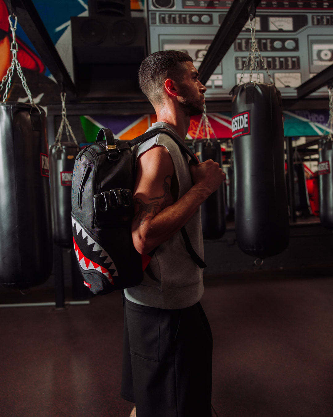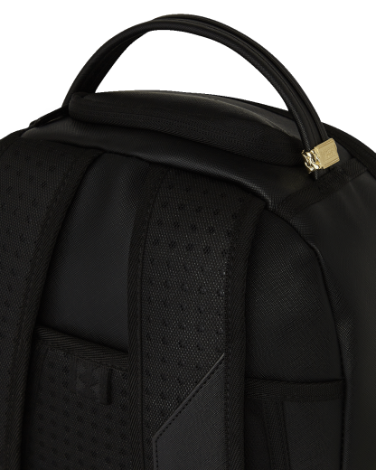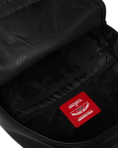 Dimensions: 18" x 6" x 11.5" • Front zipper pocket • Side pockets • Zippered Stash pocket • Separate velour sunglass compartment • Ergonomic mesh back padding • Adjustable Straps for custom sizing • Gold zippers with metal hardware • Metal "Sprayground Authentic" badge • Slide through back sleeve connects to carry-on luggage to free your hands