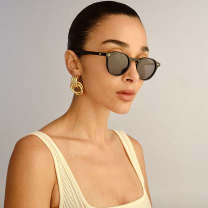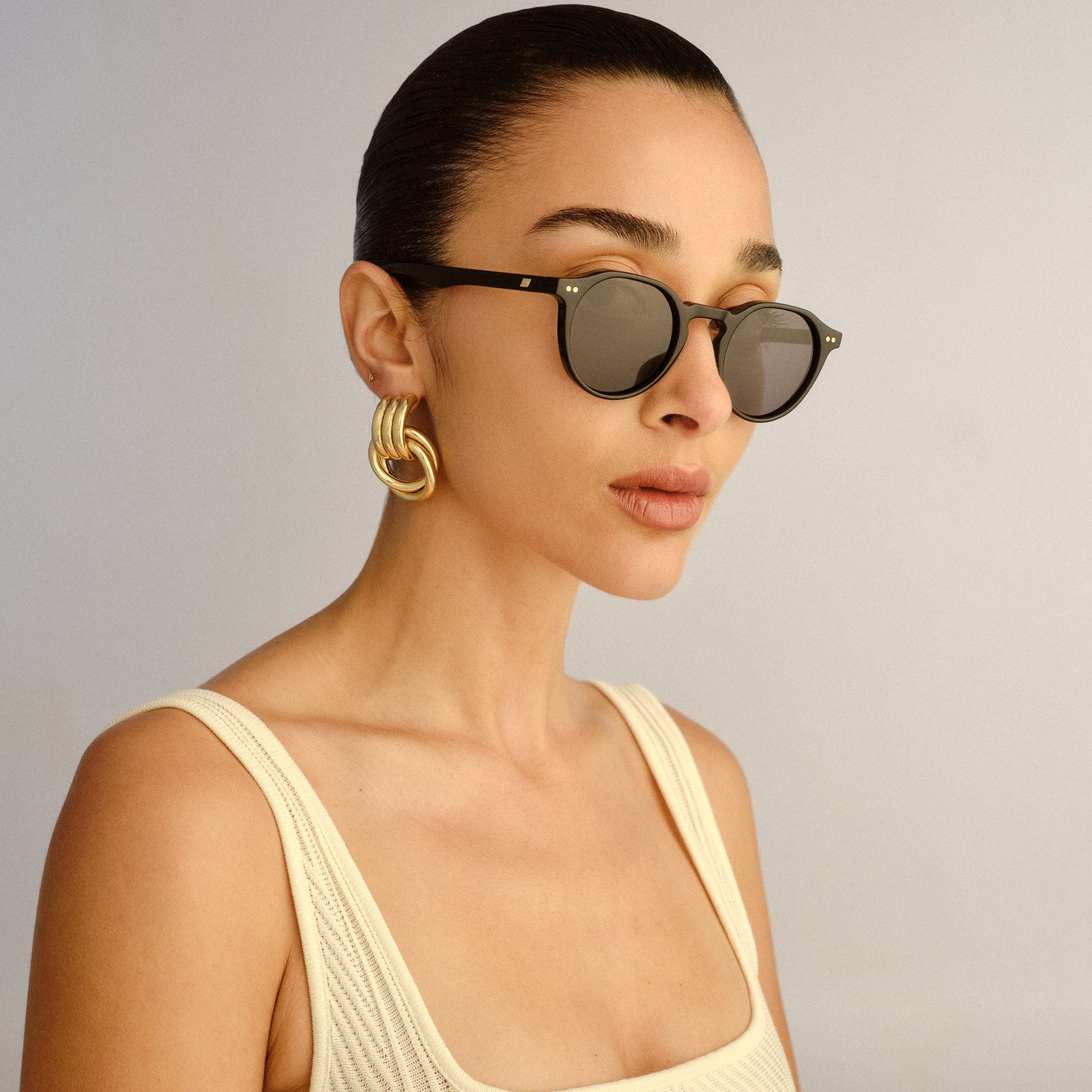 Uninhibited, carefree, and classic, our GALAVANT sunglasses are a modern update on a classic vintage silhouette. With squared-off details, this easy-to-wear round style is the perfect all-around sunglass offering a timeless esthetic. Featuring a keyhole nose bridge and refined angles, this midsize style is finished with discreet dual rivetdetailing and Le Specs flagstripe metal hardware.