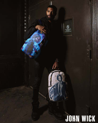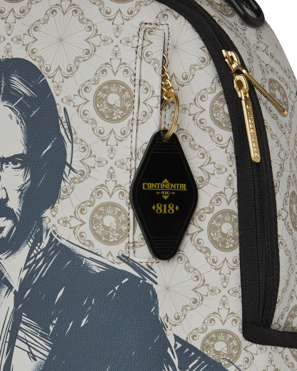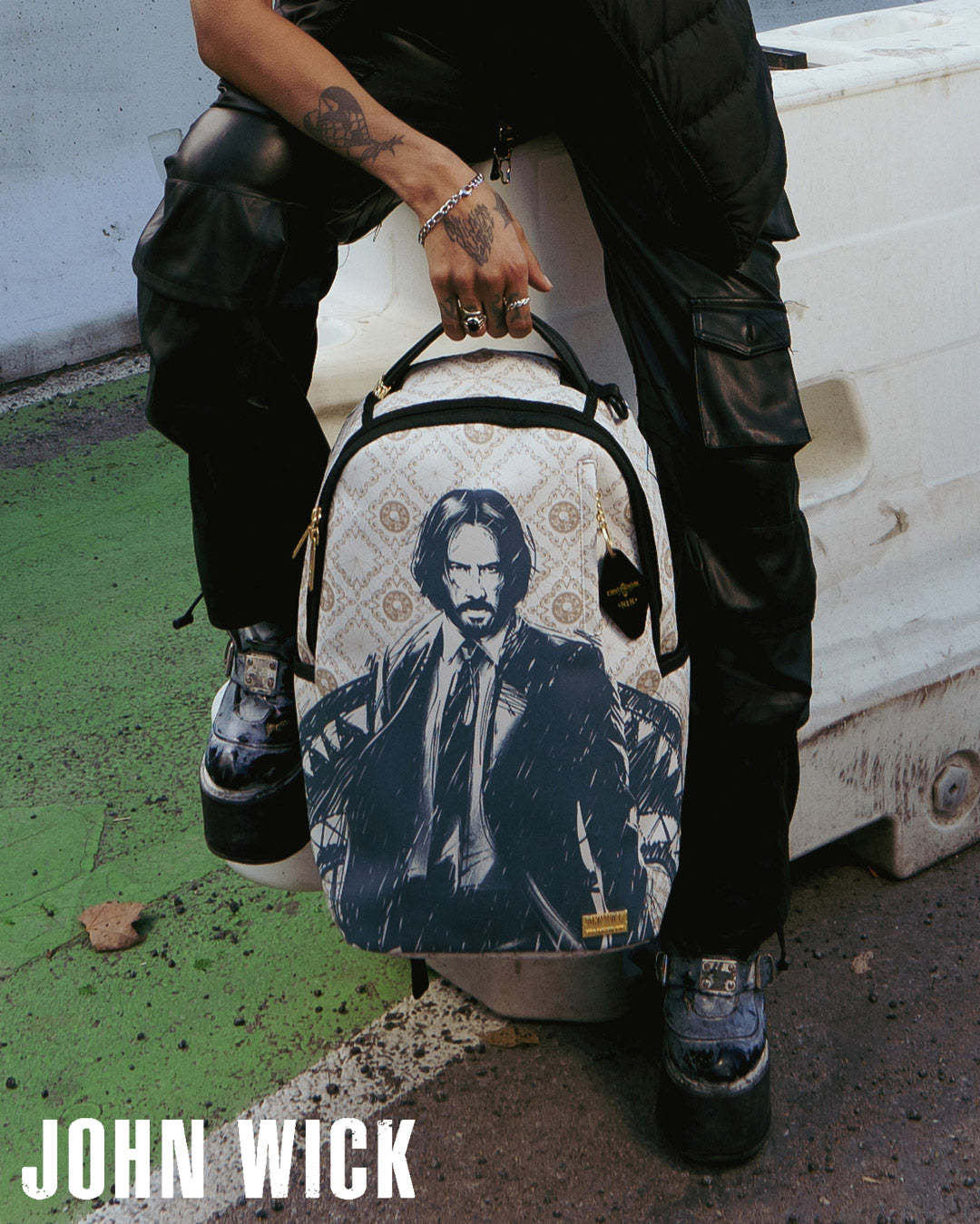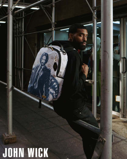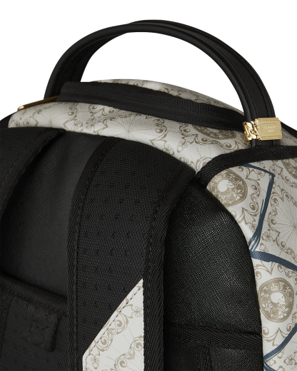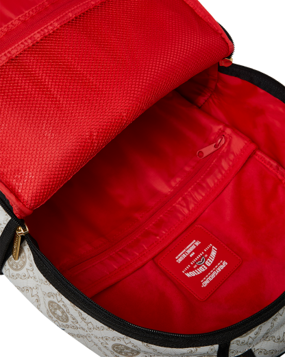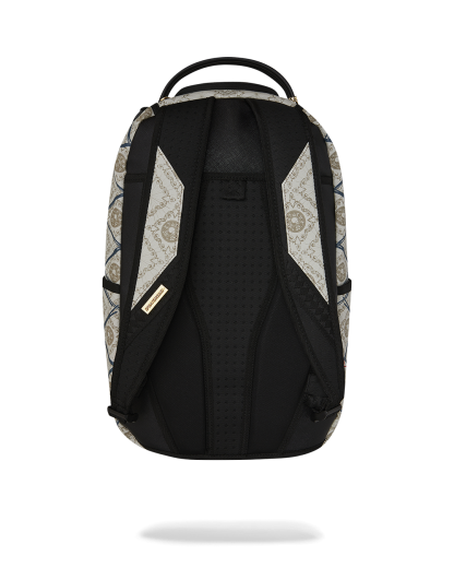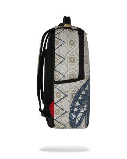 Dimensions: 18" x 6" x 11.5" • Front zipper pocket • Side pockets • Zippered Stash pocket • Separate velour sunglass compartment • Ergonomic mesh back padding • Adjustable Straps for custom sizing • Gold zippers with metal hardware • Metal "Sprayground Authentic" badge • Slide through back sleeve connects to carry-on luggage to free your hands