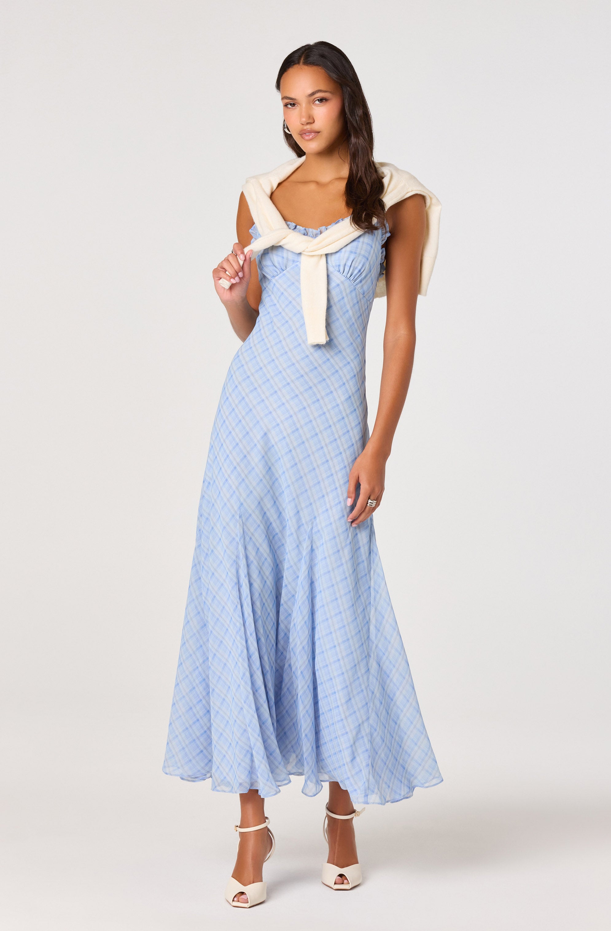 Maeryn Plaid Ruffle Trim Maxi Dress