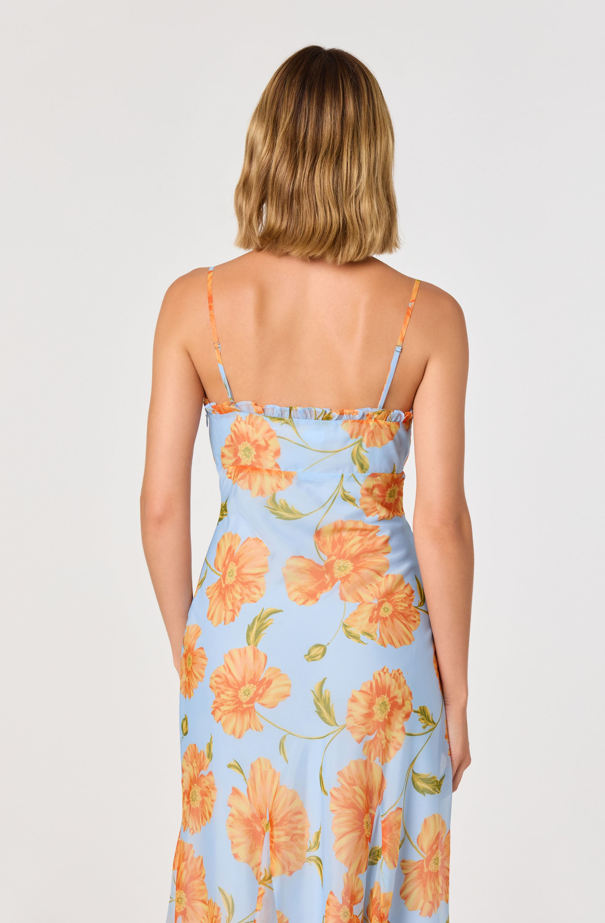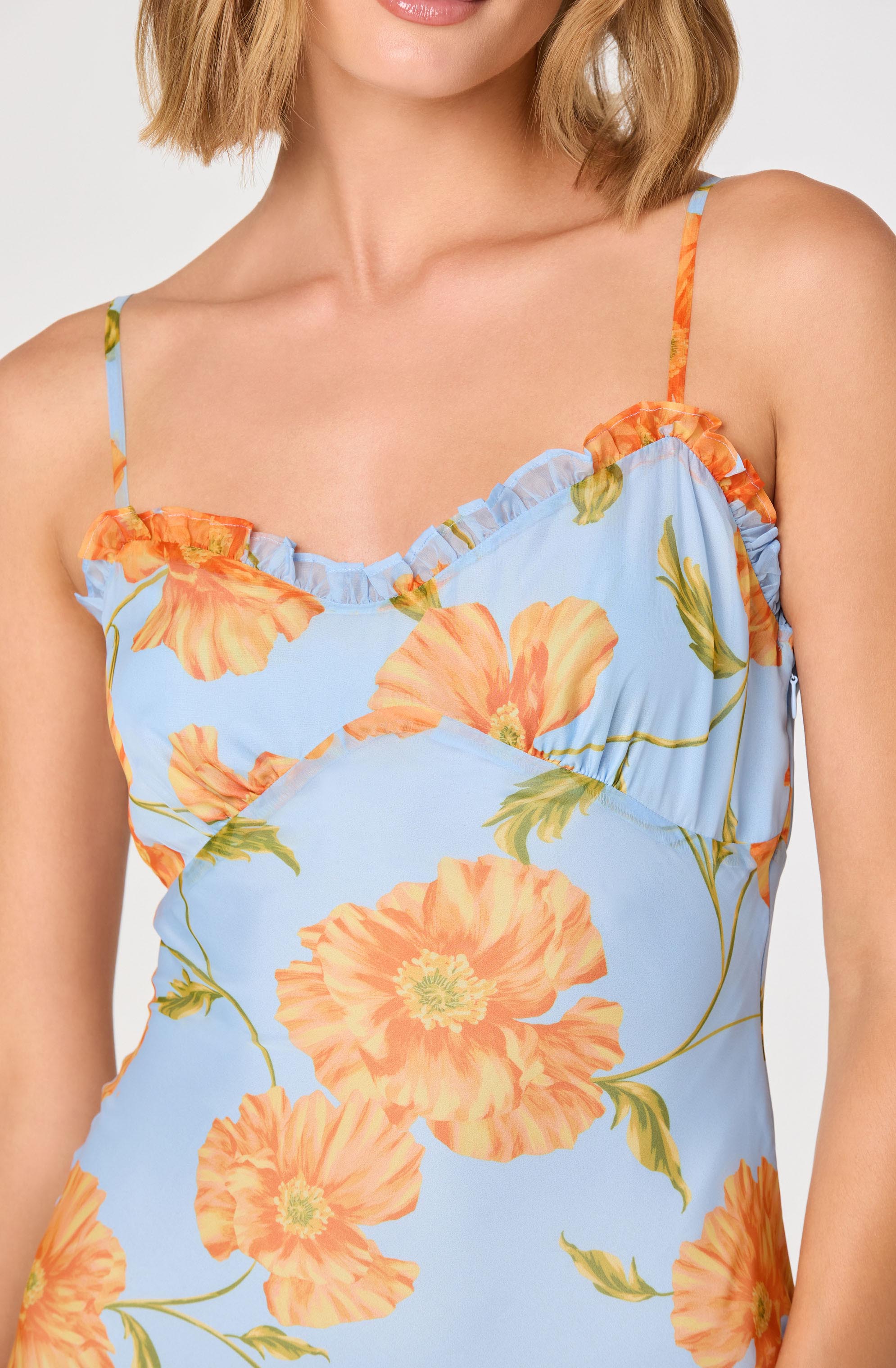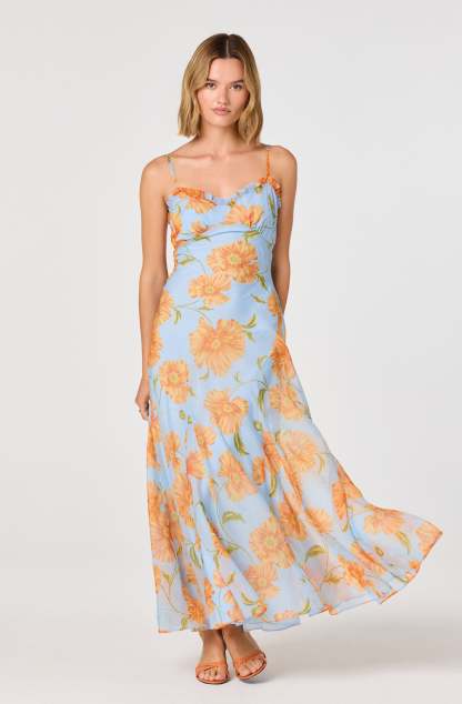 Fresh print gets a romantic update with a sweetheart neckline and ruffle trim. Adjustable straps and a gathered bust ensure comfortable, easy-to-wear elegance.
