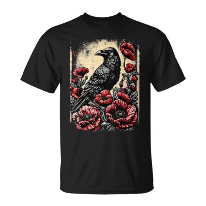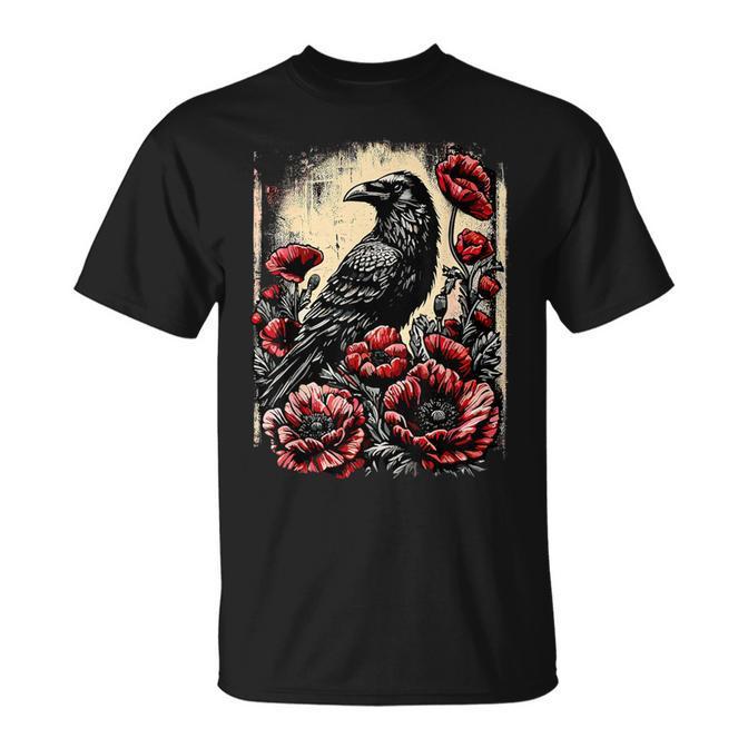 Gothic Raven Rose Floral Crow T-Shirt