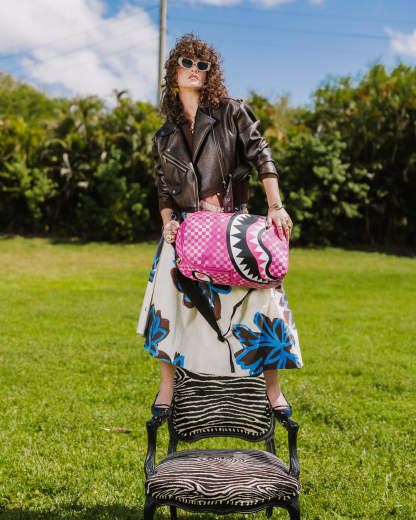 Dimensions: 18" x 6" x 11.5" • Front zipper pocket • Side pockets • Zippered Stash pocket • Separate velour sunglass compartment • Ergonomic mesh back padding • Adjustable Straps for custom sizing • Gold zippers with metal hardware • Metal "Sprayground Authentic" badge • Slide through back sleeve connects to carry-on luggage to free your hands