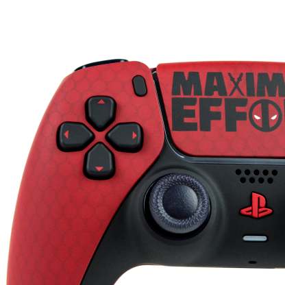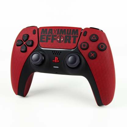 Slice your way through the competition with this Deadpool Custom PS5 Controller! Inspired by the red bloodshot in Wade Wilsons eyes our matching red controller takes a spin on Deadpool's Suit. We even captured the mesh and worn look in the fabric! Complete with matching red and black buttons this design is definitely a masterpiece, but you already knew we would go over the top, or give "Maximum Effort", if you will.