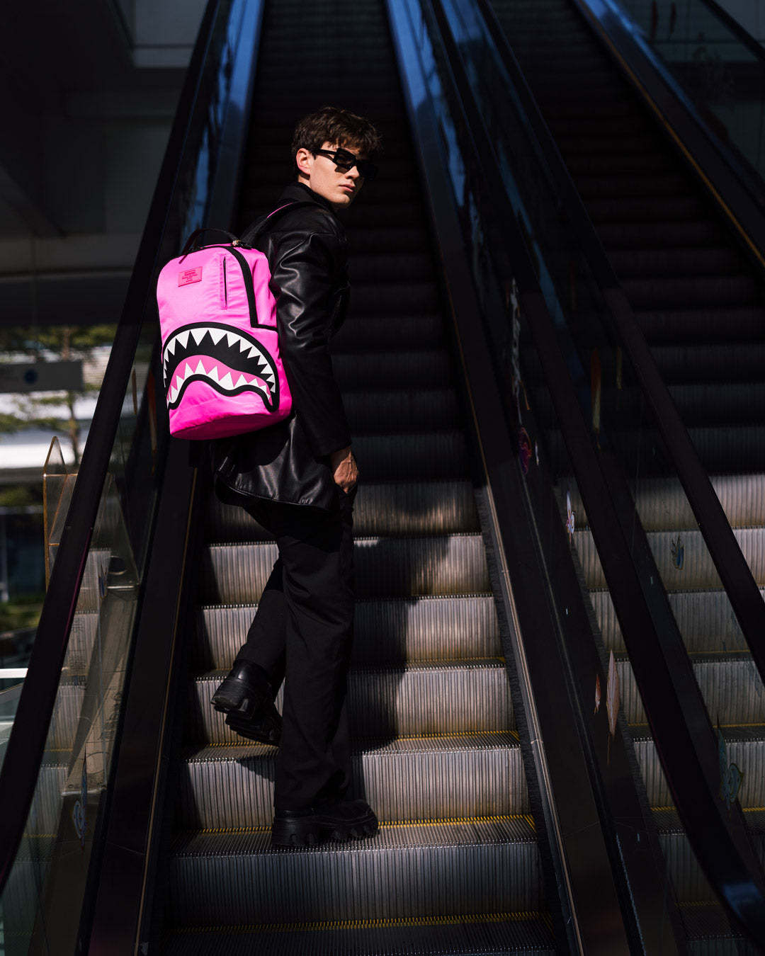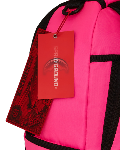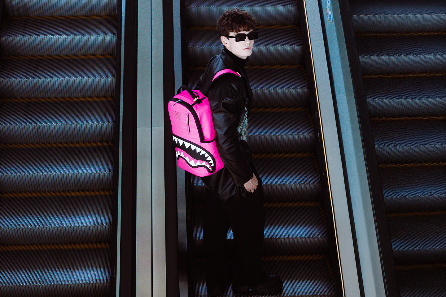 Dimensions: 18" x 6" x 11.5" • Front zipper pocket • Side pockets • Zippered Stash pocket • Separate velour sunglass compartment • Ergonomic mesh back padding • Adjustable Straps for custom sizing • Gold zippers with metal hardware • Metal "Sprayground Authentic" badge • Slide through back sleeve connects to carry-on luggage to free your hands
