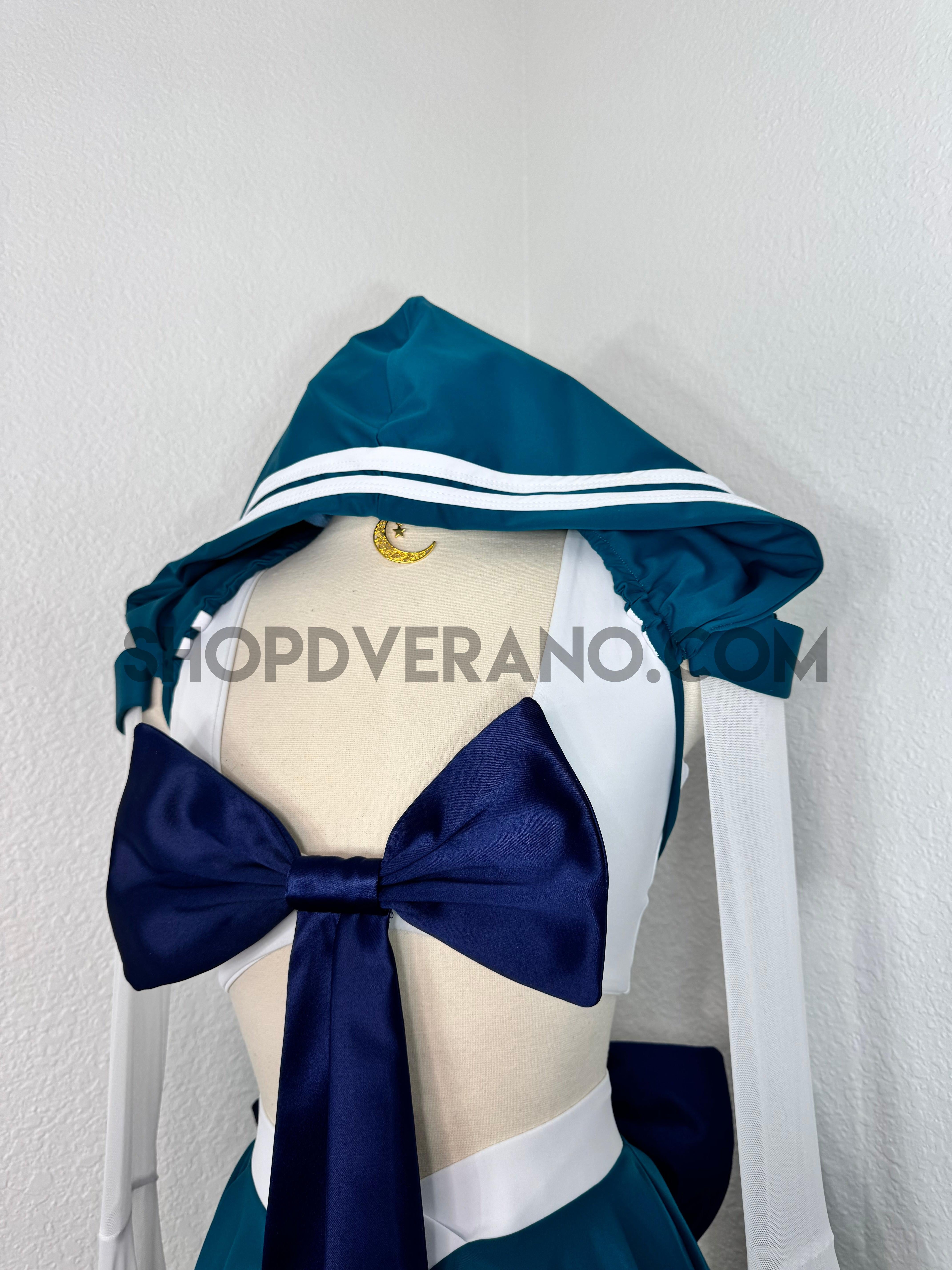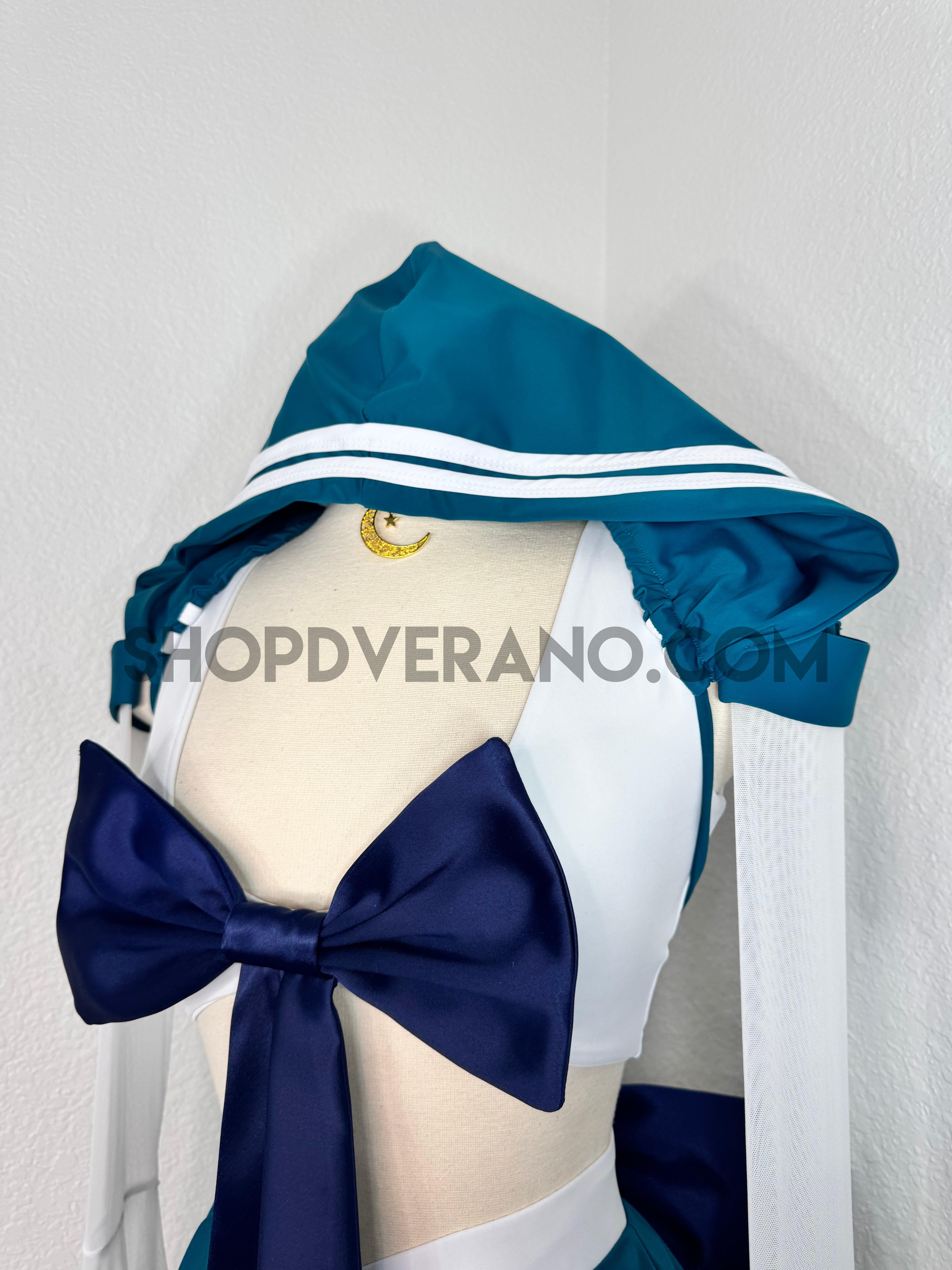 The look is completed with unique hoodie with white stripe detailing, an oversized back bow with a cascading touch, and a matching crescent moon choker—perfect for channeling your inner heroine, whether you’re dancing under festival lights or stepping into character at your next convention.