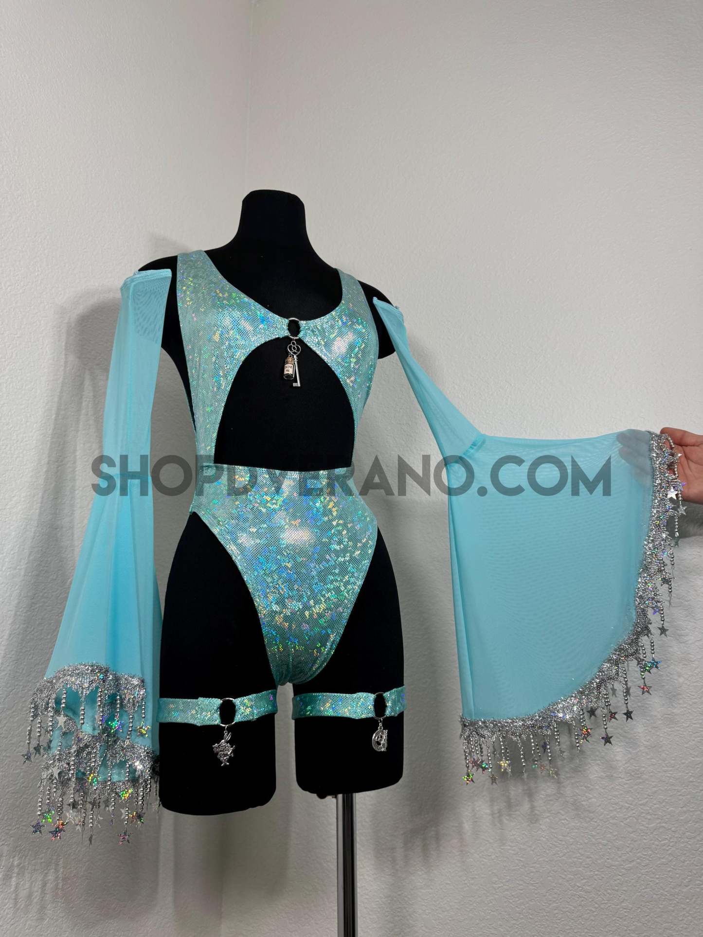 The Wonderland Set is a whimsical masterpiece designed to enhance every body type. Made from 208 GSM shattered glass foiled spandex, this radiant outfit catches the light with every move, ensuring all eyes are on you. It’s the kind of fit that will have everyone asking, “Where did you get that?”